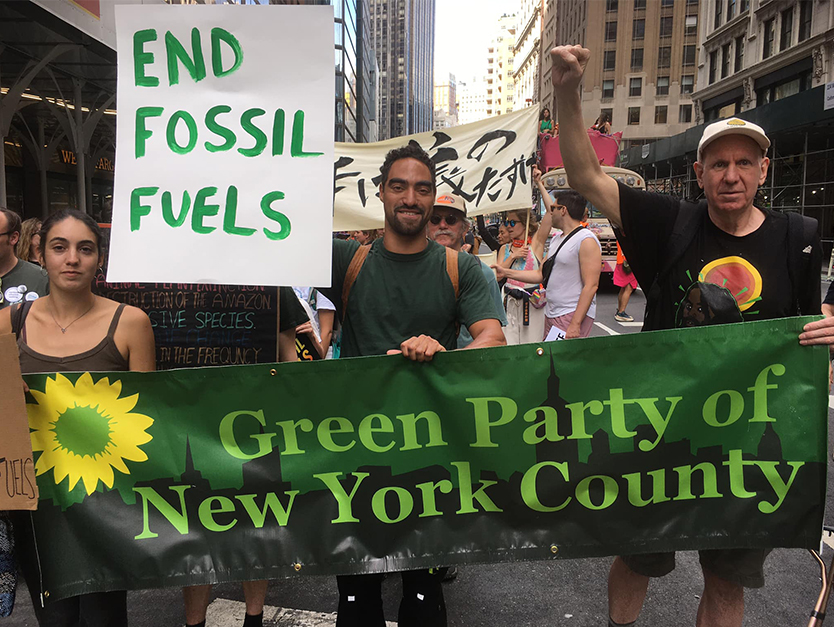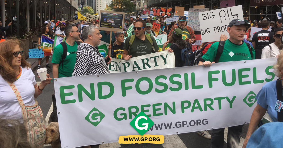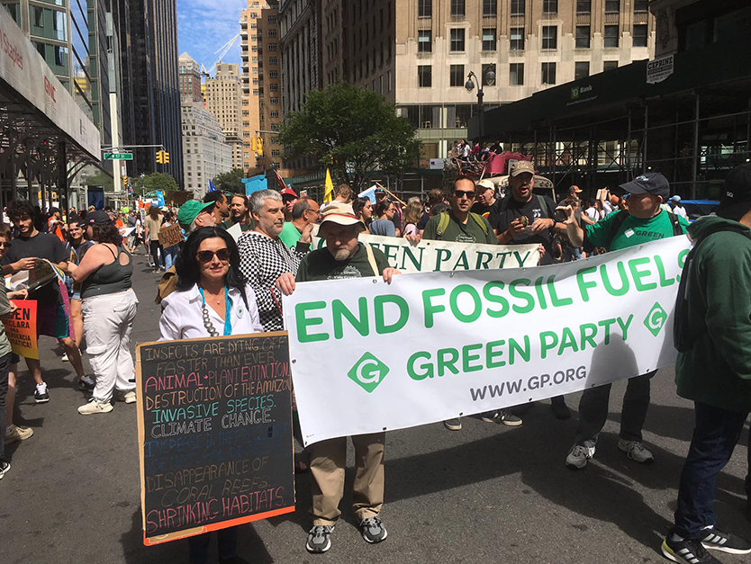 Greens from at least 5 states and the District of Columbia joined tens of thousands of Climate Change activists marching in New York City on Sunday, September 17 in demanding an End to Fossil Fuels.