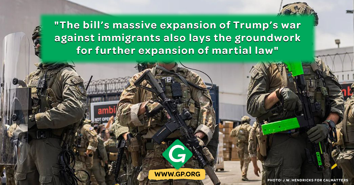 The Party said the bill’s massive expansion of Trump’s war against immigrants also lays the groundwork for further expansion of martial law, as witnessed by his mobilization of the military in Los Angeles and his increasing arrest of elected officials who oppose ICE’s kidnapping of law-abiding residents.