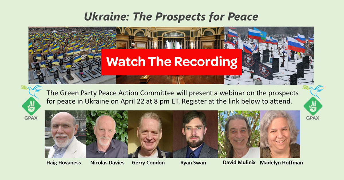 Watch an important webinar recently produced by the Green Party Peace Action Committee (GPAX) and the nascent National Arab American and Muslim American Green Party Caucus (still forming) with Dr. Jill Stein, Mark Elbourno, Wissam Charafeddine, Haig Hovaness, and Madelyn Hoffman to turn outrage into organized aid and political pressure.
