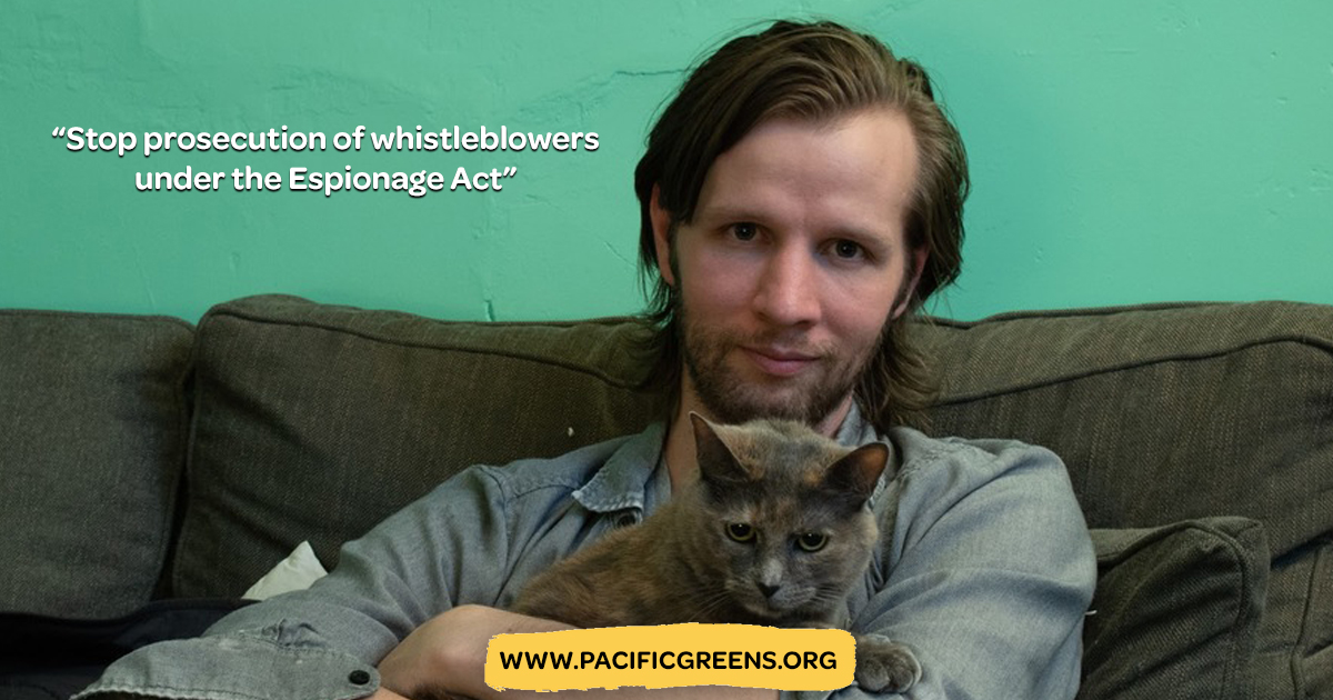 CORVALLIS, OR – Greens are committed to peace and non-violence including calling out the militarism that plagues our country. We stand in solidarity with whistleblower Daniel Hale who was prosecuted under the Espionage Act, and which unjustly denies him civil rights protections under the Whistle Blower Act of 1989.