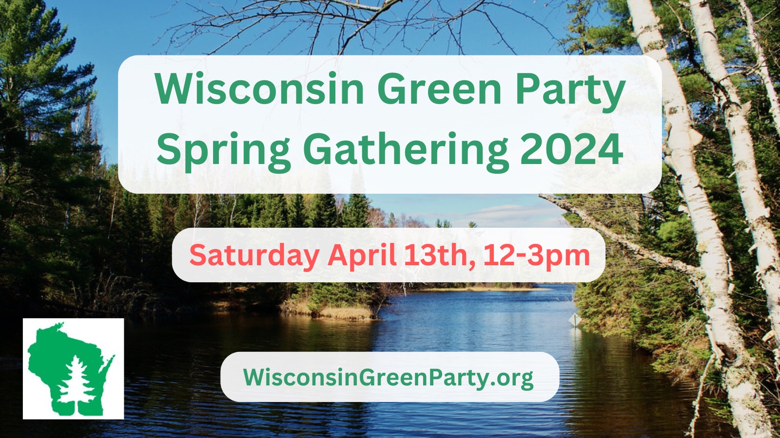 Join the Wisconsin Green Party for our 2024 Spring Gathering state membership meeting on Saturday April 13th at noon!