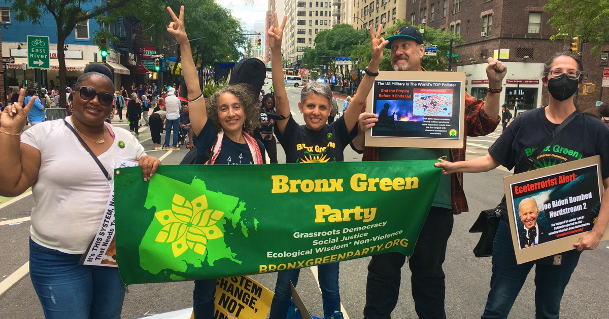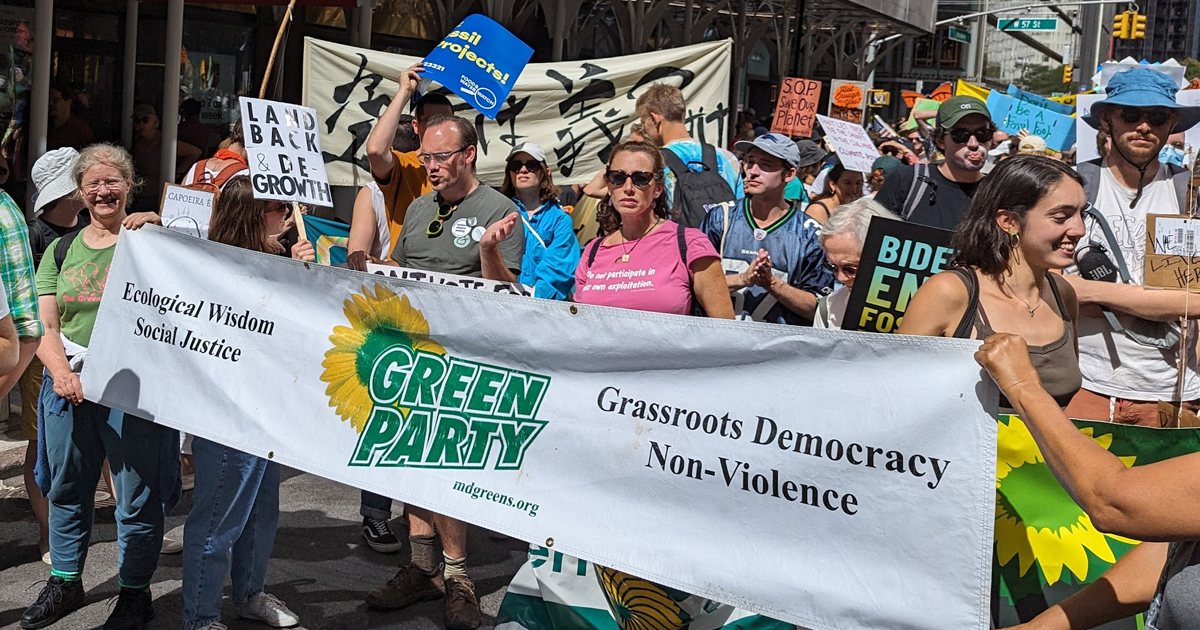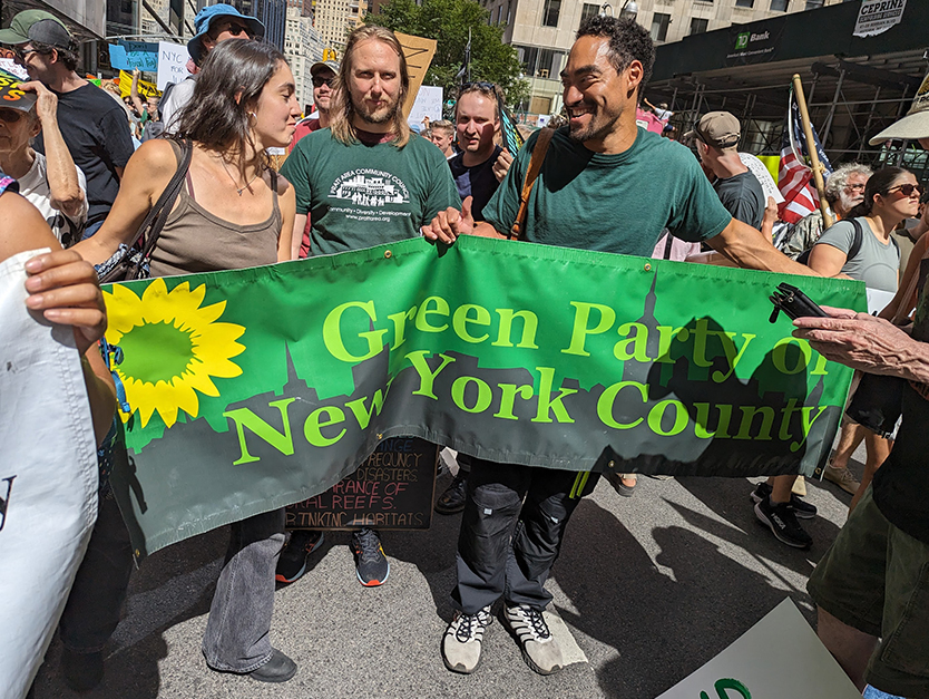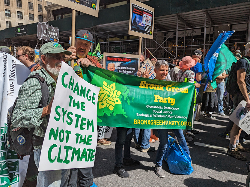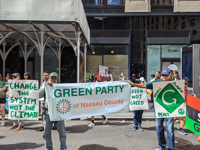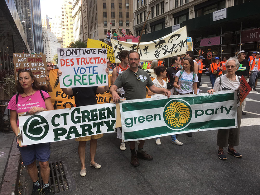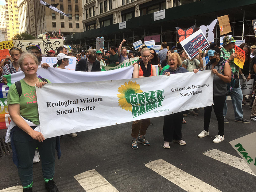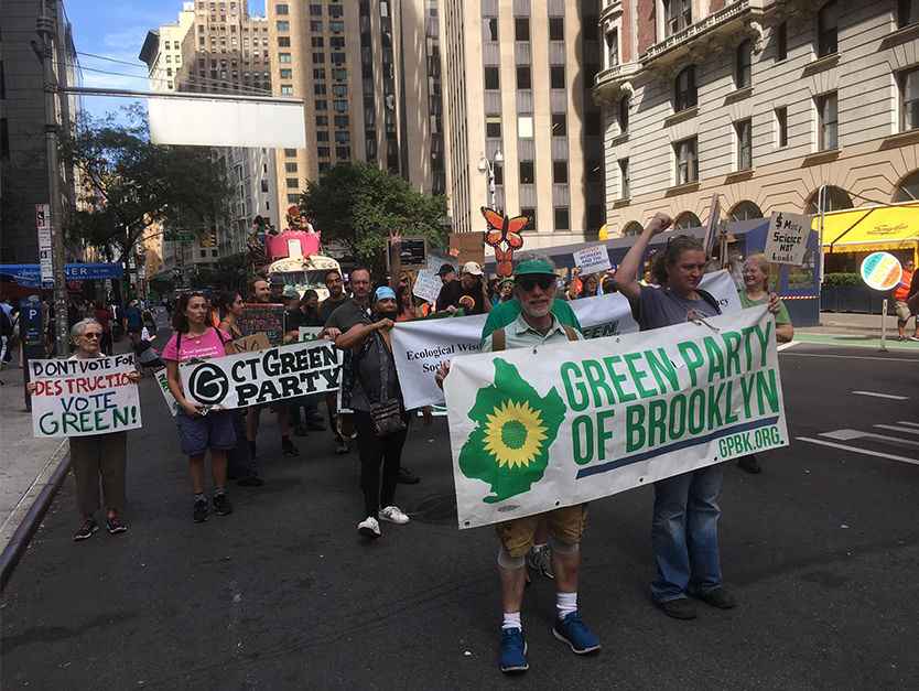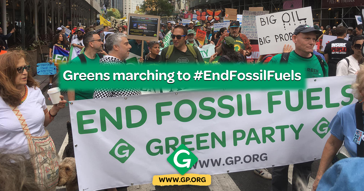 Greens from at least 5 states and the District of Columbia joined tens of thousands of Climate Change activists marching in New York City on Sunday, September 17 in demanding an End to Fossil Fuels.