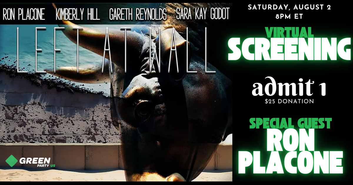 On Saturday, August 2nd at 8:00 pm ET, we’re doing a special virtual screening of my new film, Left at Wall. It’s a political satire that pokes the bear we all know needs poking and it’s gonna benefit the Green Party.