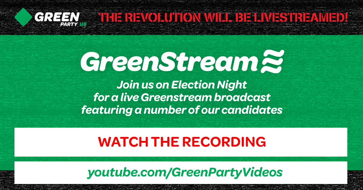 On November 5 the Green Party hosted a live stream featuring Green candidates and campaigners with interviews from their campaign Watch Parties and Victory Parties.