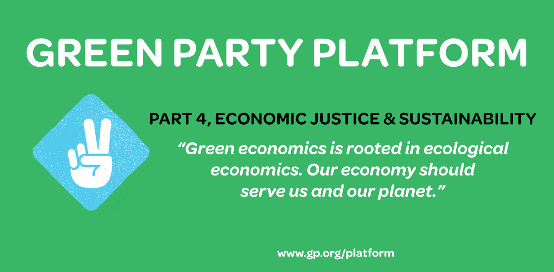 - The Green Party opposes capitalism and seeks to build an alternative economic system based on social ecology, decentralization of power, and freedom from state control. We will build an eco-socialist economy based on large-scale green public works, municipalization, and workplace and community democracy. Worker and community empowerment will ensure that decisions that greatly affect our lives are made in the interests of our communities, not at the whim of capitalist CEOs and distant boards of directors. Democratically run enterprises embedded in and accountable to our communities will make more ecologically sound decisions and help end labor exploitation, environmental exploitation, and racial, gender, and wealth inequality and bring about economic and social justice.