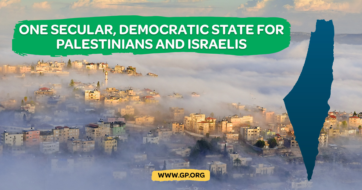 THE GREEN PARTY STANDS IN SUPPORT OF ONE SECULAR, DEMOCRATIC STATE FOR PALESTINIANS AND ISRAELIS