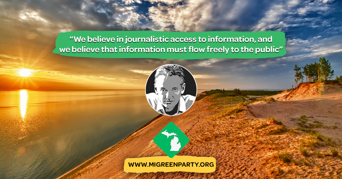 (DETROIT, MI – 04/15/2019) Leaders and members of the Green Party of Michigan issued strong reactions to the arrest of Wikileaks publisher Julian Assange by Metropolitan Police officers last Thursday. Greens cited journalistic freedoms and whistleblower protections should be available to Assange, who has been confined inside the Ecuadorian Embassy in London since 2012.