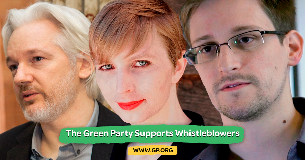 The Green Party supports worldwide efforts to promote institutional transparency, because many social evils arise from the concealment of malign actions and policies. Wars, domestic repression, and economic mismanagement are all enabled by secrecy and deception of the public. Accordingly, the Green Party US Peace Action Committee calls for the immediate release of Julian Assange, the founder of Wikileaks, by the UK authorities and dropping of all charges against him by the US government.