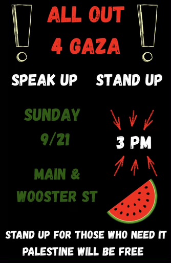 There have been a lot of protests and actions this summer, and there's no sign of a let up for the fall. A number of us went to Sylvania to support the Palestinian dance troupe, "From Rubble We Dance" back on September 3. It was an inspirational celebration of life and defiance. Our next protest in opposition to the genocide is tomorrow, 9/21 Main and Wooster, 3 to 4:30 PM.